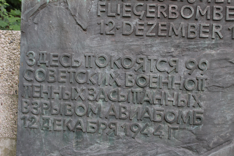 Захоронение 1667 советских военнопленных и подневольных рабочих. На кладбище хоронили умерших в рабочих командах :